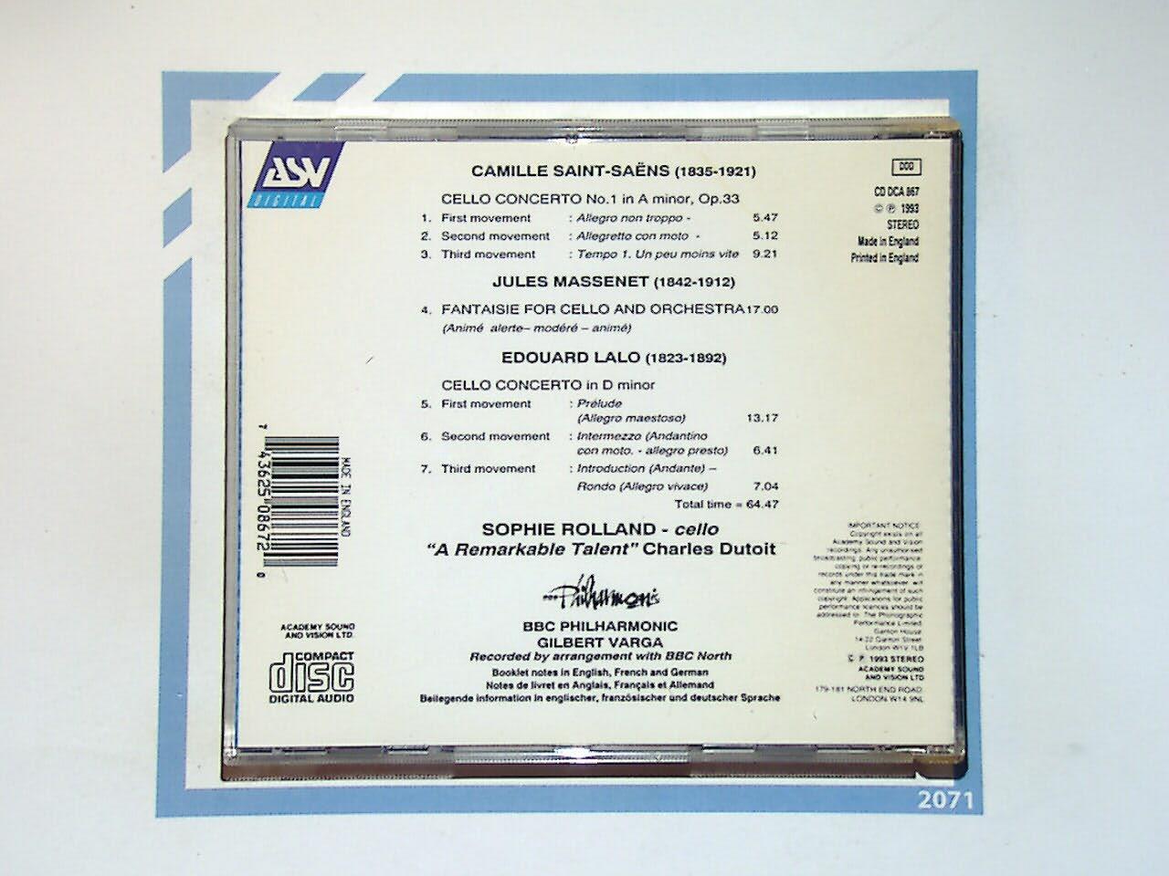 Sophie Rolland Massenet: Fantaisie / Saint-Saens & Lalo, Cello Concertos CD Mint